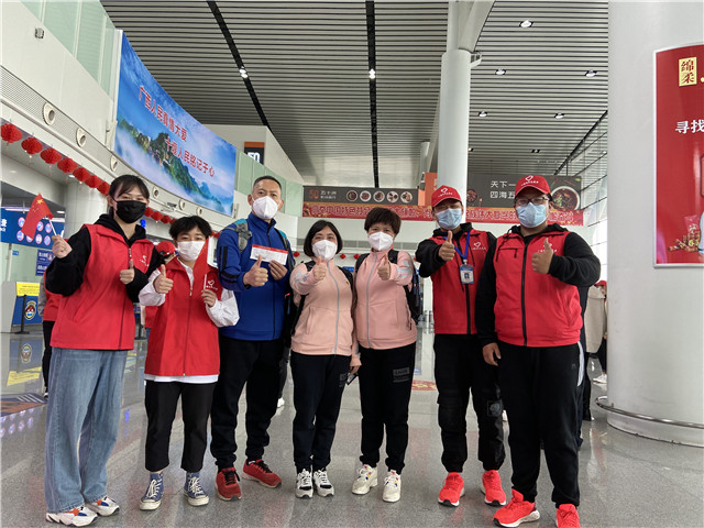 志愿者们还暖心的准备了手势舞,欢送来自广西的英雄。