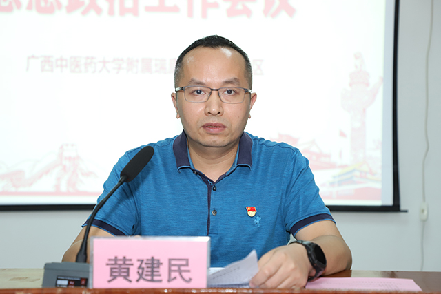 会上,黄建民代表医院党委作了重要讲话,他对林宗汉总支书记的报告表示赞同,肯定了院区在全面从严治党工作取得的成绩。他指出,要切实把思想和行动统一到中央决策部署上来,准确把握医院党风廉政建设和反腐败工作形势,切实解决医院全面从严治党存在的不足,巩固发展医院风清气正的政治生态,推动院区党的建设和各项事业又好又快发展。就院区全面从严治党工作,黄建民提出了四点要求,一是加强党的政治建设,贯彻落实“两个维护”;二是坚决杜绝形式主义,扎实做好疫情防控和脱贫攻坚工作;三是落实公立医院党的建设,发挥党建引领作用;四是加强党风廉政建设,深化从严治党主体责任压力传导。