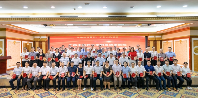 出席大会的院领导为获得表彰的医师颁发荣誉证书并合影留念