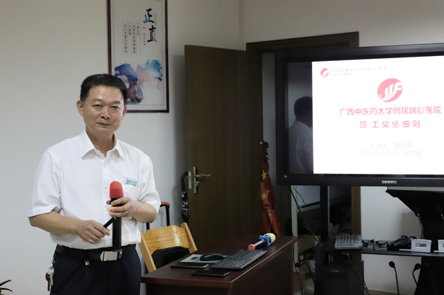 开班仪式上,首先,党总支书记林宗汉代表院区向新员工表示热烈的欢迎,并一一介绍了院区领导班子成员和行政职能中层干部。接着,执行院长梁春才致辞,他指出新员工的加入为医院发展注入了新鲜血液,是医院可持续发展的新动力,并讲述了自己30多年的从医经历。梁春才对新员工提出三点要求;一是在工作中,要巩固在学校学到的基础知识,做到理论与实践相结合,加强“三基”训练;二是加强病种临床路径、诊疗规范及流程的学习,提高医疗质量,保障医疗安全;三是紧跟现代医学前沿,树立终身学习的理念,积极参加各种形式的进修和培训活动。