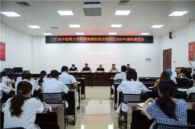 为切实加强新形势下医院廉政建设,增强干部的勤政廉政意识,9月21日下午,田阳院区在门诊五楼大会议室召开了2020年廉政谈话会。党支部书记甘照儒,执行院长龙驹,副院长陆秀伟、陈威、张巍,中层干部以及重点岗位人员、重点人员参加了会议,会议由龙驹主持。