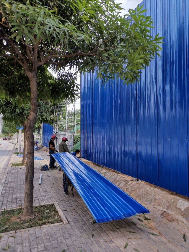 工人正在进行围挡施工