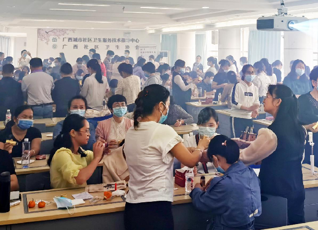 11月21日-22日,由广西中西医结合学会主办、广西中医药大学附属瑞康医院承办的广西中西医结合学习班暨中医适宜技术雷火灸实操培训班在我院顺利开班。医院副院长陈锋、中医特色建设科科长朱永苹、妇科二区主任钟洁出席开班仪式,来自河南、海南、福建、广西等省、区的36家医疗机构33个临床科室的168名医护人员参加了本次培训。