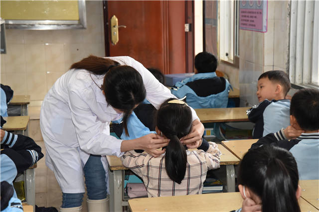 当天,黎清兰依次来到一年级的各个班上进行指导。课堂上,黎清兰运用多媒体播放眼保健操示意图,同时通过现场示范与互动的方式,向同学们生动形象地讲解了视力保健穴位、眼保健操动作要求及注意事项,针对不容易找准的穴位进行了纠正和指导。同学们都积极专注地跟着学、练,改正自己的错误动作,掌握了各节操的动作要领。最后,大家跟随着音乐节拍,认真地做着眼保健操。