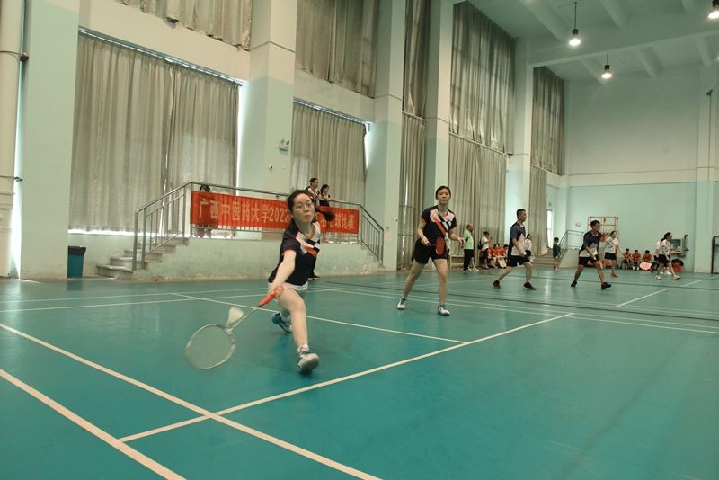 7月3日,由广西中医药大学体育运动委员会主办,校工会、体育部承办的“羽动人生,‘球’得健康,喜迎‘二十大’启航新征程”教职工羽毛球比赛在仙葫校区体育馆举行。学校纪委书记覃宇环参加活动开幕式。我院纪委书记黄建民带队参加本次比赛。