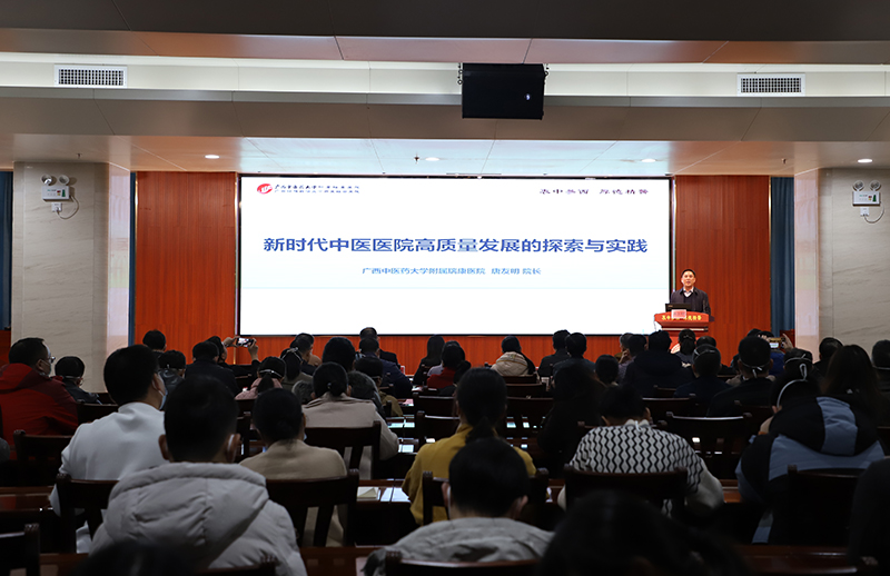 1月6日,我院唐友明院长到空港院区指导院区建设工作,并作“推动中医药高质量发展”专题讲座,院区领导林宗汉、梁春才、赖崇杰、黄建东、朱永苹、周永喜、曹步清出席讲座,扶绥县13家乡镇卫生院院长、以及院区全体中层干部、非值班的干部职工参加讲座。讲座由院区党总支书记林宗汉主持。