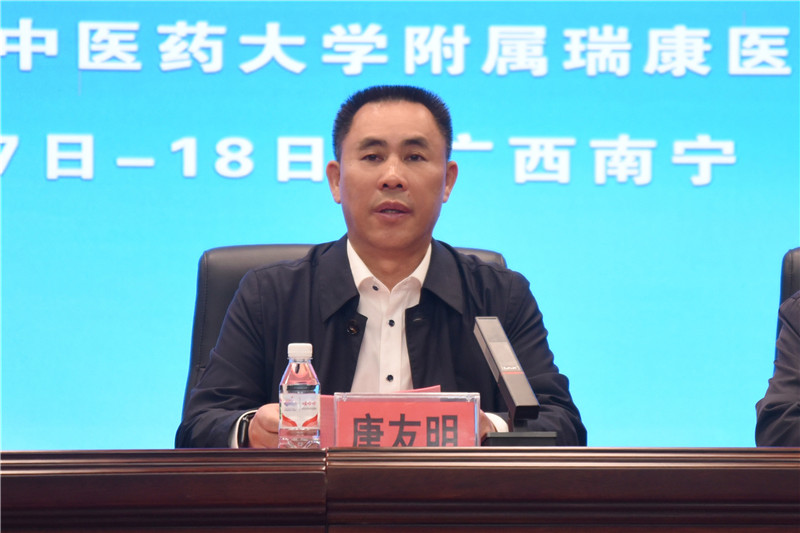 唐友明院长向与会人员介绍了我院的基本情况和近年来取得的一系列成绩。党的二十大报告指出要“推进健康中国建设,促进优质医疗资源扩容和区域均衡布局,提高基层防病治病和健康管理能力,深化以公益性为导向的公立医院改革,规范民营医院发展”。提高基层医疗卫生服务能力,为基层群众提供优质的医疗服务,关乎到建设健康中国的战略大局。近年来,瑞康医院作为广西城市社区卫生服务技术指导中心依托单位,在推进基层医疗服务能力建设方面做了大量的工作,包括开展各类培训项目13期,学术交流、技术协作100余次等。为进一步促进合作,推动共同发展,他提出三点意见:一是积极推进分级诊疗,实现双向转诊工作;二是不断加大对基层医疗卫生机构的支持力度,提升服务能力和工作水平;三是坚持互帮互助,共同发展。