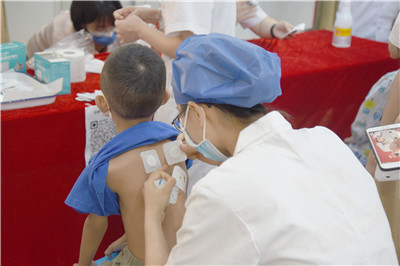 随后,高宏君书记宣布义诊活动正式开始。市民们按需进行敷贴。