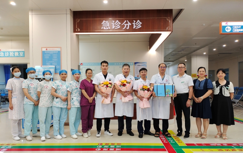 8月18日上午,院区党总支书记林宗汉、执行院长梁春才、副院长黄建东、朱永苹、周永喜带领党政办、医务科等职能科室负责人亲切慰问临床一线辛勤工作的医务人员,送上节日的祝福、鲜花及蛋糕。慰问中,院区领导与各科室医师们亲切交谈,嘱咐大家做好工作的同时也要注重个人身体健康,鼓励大家秉持医者初心,大力弘扬“敬佑生命、救死扶伤、甘于奉献、大爱无疆”的崇高职业精神。