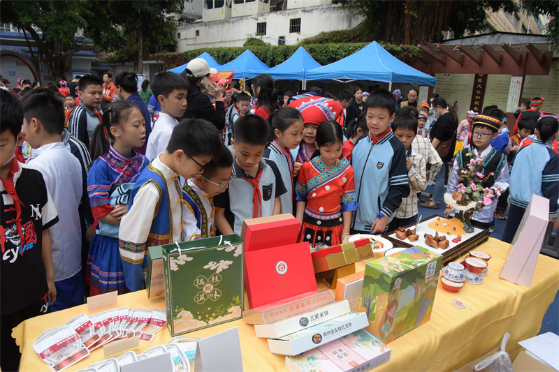 活动在欢快的歌舞声中拉开了序幕。同学们身着民族服饰,载歌载舞,用欢快的旋律和优美的舞姿展示了广西三月三的独特风情。紧接着,美食品鉴环节吸引了众多学生的目光。五色糯米饭、糍粑、油茶等广西特色美食一一亮相,让同学们在品尝美食的同时,也深入了解了广西地区的饮食文化。