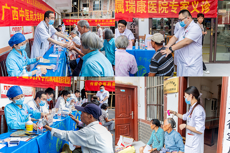 为贯彻落实广西中医药健康文化素养调查监测工作相关文件精神,进一步提升我区人民群众的中医药健康文化素养,5月21日上午,我院宣传部、医疗服务部组织老年病科、脑病科、妇科、骨科、治未病中心、正骨推拿理疗馆、急诊科等科室专家团队来到南宁市江南区江西镇开展义诊暨广西中医药健康文化素养知识宣教活动,为村民们诊疗的同时,向他们普及中医药健康知识。