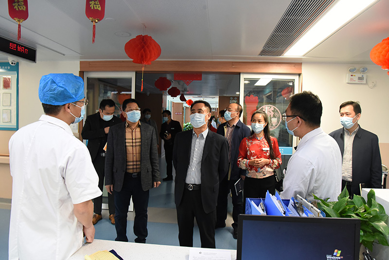 新年伊始,万象更新。2月18日,大年初七,是辛丑牛年春节假期后的第一个工作日,一大早,医院领导班子及相关行政职能科室负责人一行带着新春的祝福来到临床一线,亲切慰问坚守在医院各个工作岗位上的医护人员,给大家拜新年、送祝福、鼓干劲,并就疫情防控工作进行了现场督查及指导。