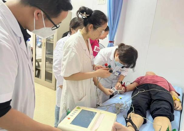 随后,周卓宁专家团队联合兴安县中医医院开展惠民义诊活动。义诊现场,有一位等候就诊的老年男性突发呕吐、意识不清、全身冒冷汗,周卓宁教授迅速至患者身旁查看患者,检查生命体征,发现患者嘴巴有呕吐物、口唇紫绀、面色苍白、不能言语、冒冷汗,初步判断为脑血管疾病,立即协助保持呼吸道通畅,并指导兴安县中医医院医务人员为病人开通静脉通道,并立即送CT室完善检查。周卓宁教授凭借着快速的临场应变和专业救治能力,让患者得以快速救治,病情得以控制,现场群众都为周卓宁教授竖起大拇指。
