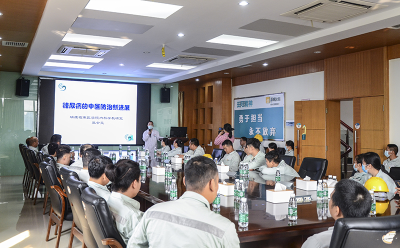 当天,田阳院区国医堂名医馆张会文博士以“糖尿病的中医防治健康教育”和“冠心病的中医药防治”为题开展知识讲座,他用通俗易懂的语言为现场职工讲解糖尿病、冠心病的治疗与预防知识;口腔科陈仲春医生带来“口腔保健”知识讲座,呼吁大家养成爱牙护齿的好习惯,提高口腔保健意识;急诊科陈振前医生为大家带来了心肺复苏应急急救的培训,现场还就如何掌握基本心肺复苏技术的操作要点及注意事项进行了演示。讲座结束后,义诊服务队员们还针对企业职工展开雷火灸、推拿治疗、手指点穴等中医适宜技术体验,同时针对职业健康常见病进行相应的预防指导,提出合理建议,提高自我保健意识。