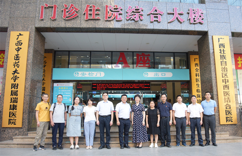 座谈会前,来宾一行还来到国医大师馆,听取对国医大师学术成就和临床案例的介绍,并与国医大师韦贵康教授合影留念。随后,他们来到射波刀治疗中心、院史馆、治未病中心、中医药博物馆参观,就关心的问题和相关科室负责人进行了深入交流。
