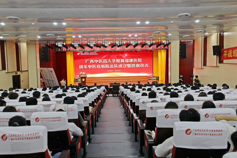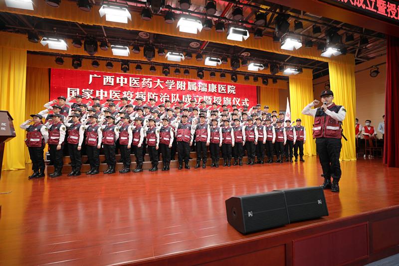 我院党委书记高宏君在主持仪式时指出,依托广西中医药大学附属瑞康医院国家中医疫病防治队的成立,开启了我院参与国家中医应急医疗工作的新征程。希望全体队员牢记使命,勇于担当,不辜负组织的信任和重托,充分发挥中医药在疫病防治中的独特优势和作用,为建设健康广西、健康中国、实现中华民族伟大复兴的中国梦贡献力量。