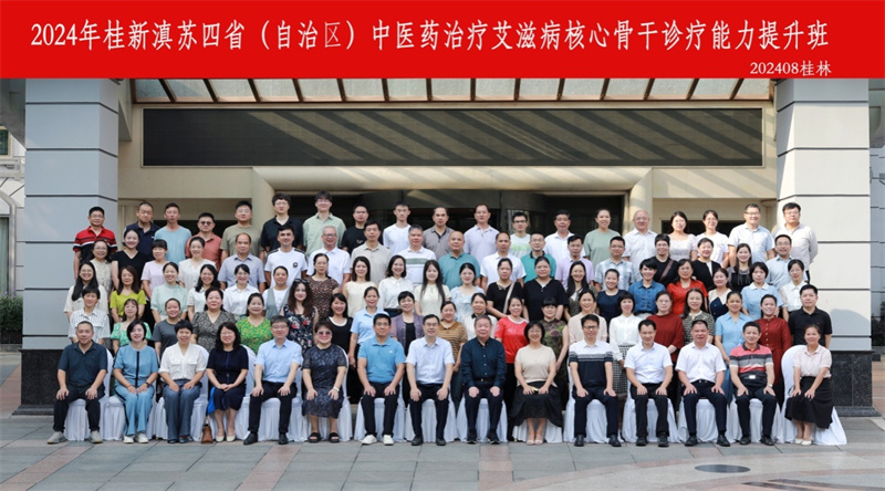 为落实推进国家中医药治疗艾滋病试点项目工作,提高项目单位骨干人才的中西医结合防治艾滋病临床与科研能力,8月29日至9月1日,由广西中医药大学附属瑞康医院、广西中医(中西医结合)艾滋病研究中心联合新疆维吾尔自治区中医医院和云南省中医中药研究院共同举办,桂林市中医医院协办的2024年桂新滇苏四省(自治区)中医药治疗艾滋病核心骨干诊疗能力提升培训班在桂林市顺利举行。自治区卫健委艾防处处长梁慧婷,中华中医药学会防治艾滋病分会名誉主任委员、中国中医科学院王健,中华中医药学会防治艾滋病分会主任委员、河南中医药大学第一附属医院郭会军,广西中医药大学附属瑞康医院副院长古联、新疆维吾尔自治区中医医院艾滋病研究室主任舒占钧,云南省中医中药研究院艾滋病研究中心主任王莉,桂林市中医医院副院长邓建华等领导和专家出席开幕式。我院艾滋病研究中心办公室主任姜枫主持开幕式。