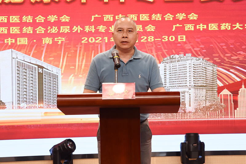 黎甲文代表自治区中医药局向出席会议的各位领导、专家、医学同道表示欢迎和感谢,他希望广西中西医结合泌尿外科专业委员会在已有的基础上,进一步完善制度机制,适应当前中医药发展新形势、新任务和新要求,提升专委会对中医药事业发展的贡献率。坚持“内外兼修”“扬优势、强弱项、补短板”,继续做好“传承创新”和“中西医结合”的文章,不断推动我区泌尿外科专业水平的进步。