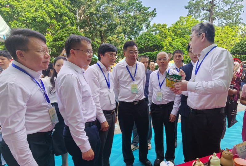 高宏君书记在展品区向领导嘉宾介绍我院院内制剂