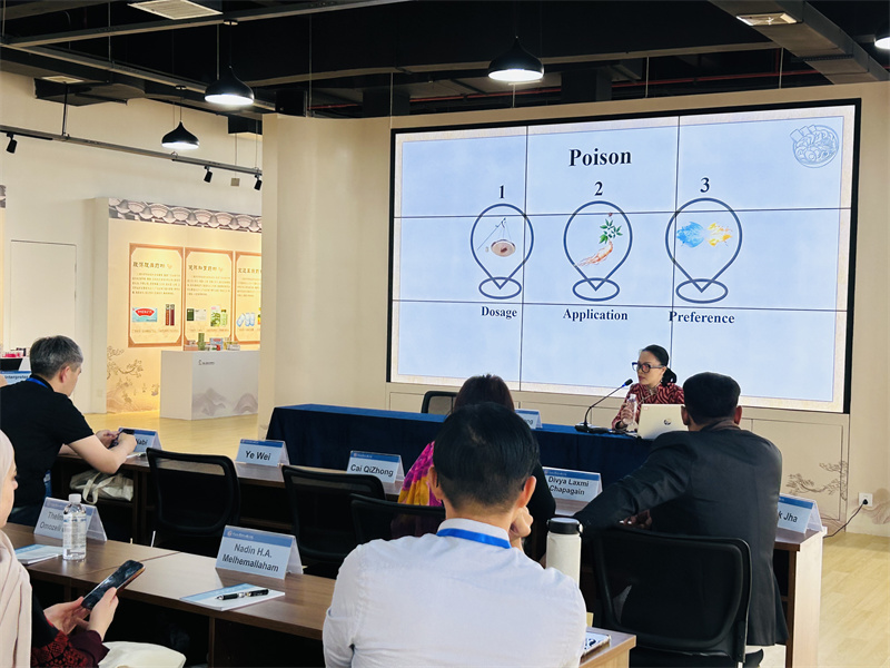 10月30日,研修班在中国-东盟技术转移中心中医药大健康产业展示厅举行了开班仪式。在仪式上,我院刘偲翔副主任中药师以《药食同源-中华传统文化中的食治》为题,为远道而来的学员们进行了精彩的培训。刘偲翔详细介绍了中国以食疗疾的历史、原理以及季节养生知识,让学员们对中国的饮食文化有了更深入的了解。此外,我院药膳小组还特别展示了具有广西特色的“桂药膳”菜肴和药膳零食,组织了时令节气的桂药膳品尝体验活动,并宣传了药膳制作的标准化流程,以更直观、更亲切的方式让学员感受节气饮食之理、之美、之韵。