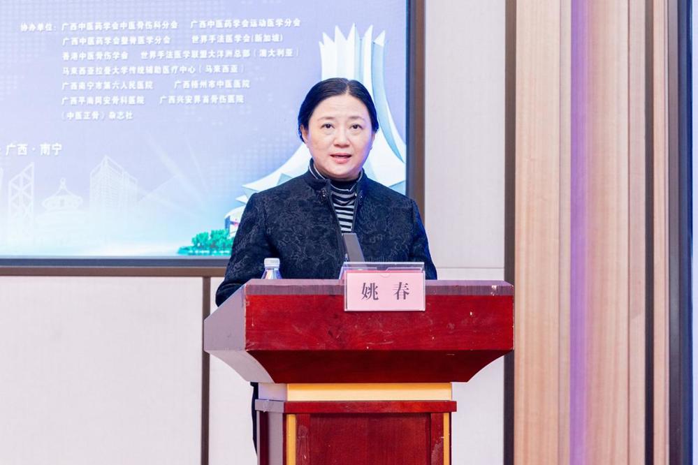 广西中医药大学党委副书记、校长姚春致辞并作主旨演讲