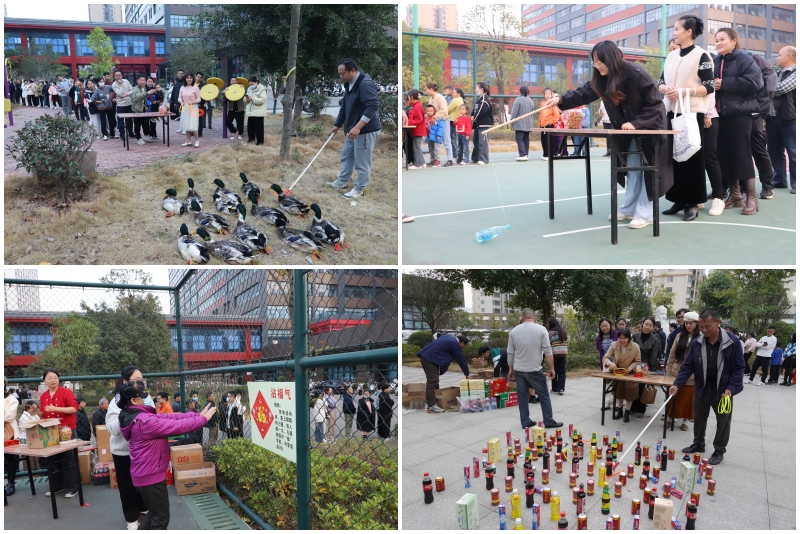 游园活动内容丰富多彩,有“沾福气”、“站起来”、单人夹球跳、套圈、投羽毛球、一箭双雕、夹玻珠、掌上明珠、套活鸭等活动项目,大家热情高涨,有序排起了长队,迫不及待地参与到活动中。现场奖品种类繁多,欢笑声、加油声交织成一片,大家也都收获了不少心仪的奖品,处处洋溢着欢乐祥和的气氛。