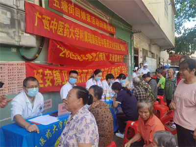 为深入推进中医药服务下沉基层,助力健康乡村建设,9月27日,我院医疗外联部精心组织了一支由老年病科、脊柱外科、肝胆腺体周围血管外科、乳腺外科、超声科及护理团队等多学科专家组成的义诊队伍,前往南宁市江南区延安镇举办了一场以“中医药文化进基层”为主题的健康义诊活动。