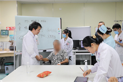 在临床查房教学环节,邓贤斌教授以典型病例为切入点,从影像学、病理生理学等角度对病情进行了精准剖析,并巧妙地引导跟学的医生及医学生们跳出固有思维,将西医的微观指标与经典中医的整体观念、辨证论治相结合。