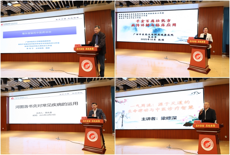 群英荟萃,论道空港。本次学术年会邀请全国名老中医、广西名中医、崇左名中医及各相关领域专家学者做学术报告,唐红珍教授、林寿宁教授、朱永苹教授、周永喜教授、梁修深教授、刘静教授、唐瞻华教授、林佳明教授、胡胜贵医师分别以《中医特色减重赋能健康管理》《慢性便泌的中医药诊怡》《千金百痛壮热方的病传详解及临床应用》《河图洛书灸对常见疾病的运用》《一气周流:源于天道的生命律动与中医诊疗智慧》《中医适宜技术赋能中医特色门诊建设》《痛敏源点主被动牵张疗法临床运用体会》《常见皮肤病经方辨证思路及体会》《空间医学(小小方)在临床的应用》为题作了精彩的学术讲座,共享中医药最新临床成果,展望未来发展趋势。