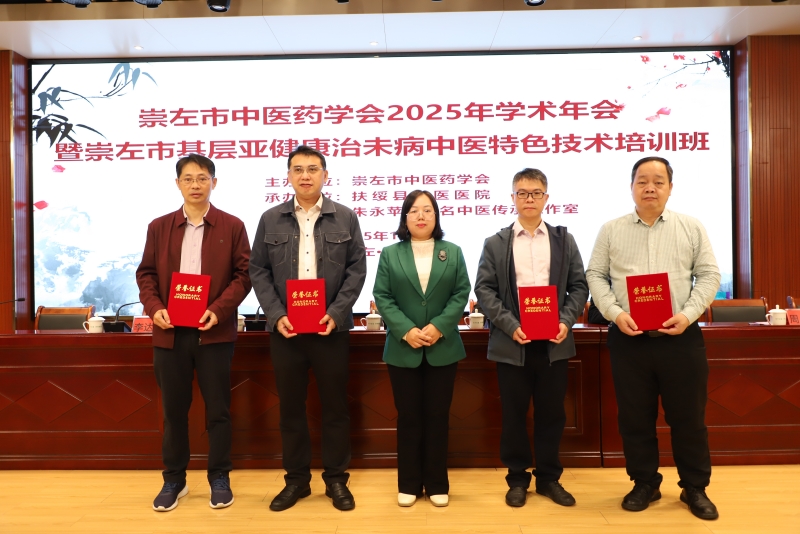 10月24日,由崇左市中医药学会主办,我院空港分院及朱永苹广西名中医工作室承办的崇左市中医药学会2025年学术年会暨崇左市基层亚健康治未病中医特色技术培训班在空港分院召开。我院院长唐红珍应邀授课,崇左市卫生健康委中壮医药管理科副科长谢玲玲,扶绥县卫生健康局副局长梁尚才,原崇左市中医药学会会长朱永苹,崇左市中医药学会副会长李达鹏、周炼,空港分院党总支书记曹步清,执行院长周永喜,副院长滕居赞,原崇左市中医药学会理事会监事林宗汉出席会议。崇左市中医药学会全体理事以及崇左市各级医疗机构中医药工作代表150余人参加会议。会议开幕式由曹步清主持。