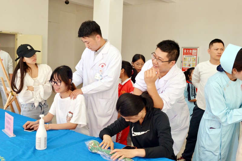 活动期间,医院充分发挥专业优势,宣传部、医疗外联部组织中医药博物馆、心血管内科一区、骨科康复中心、视光中心等科室专家联合开展内容丰富、形式多样的中医药文化体验活动。在报告厅内,中医药博物馆的中药师通过生动讲解和互动教学,向学生们普及了中医药养生知识,并带领大家初步体验了传统养生功法“八段锦”,激发了孩子们对中医文化的浓厚兴趣;图书馆一楼的体验区更是人气爆棚,茶饮品尝、香囊制作、药材辨识等互动项目依次排开,师生们在专家指导下 "眼观、手触、鼻闻",亲手将石菖蒲、藿香等药材制成随身香囊,品尝菊花、生姜等搭配的养生茶饮,在实操中解锁中医药的神奇密码。此外,专家团队还为师生提供骨科健康评估、视功能检查、心血管保健咨询等服务,进一步加深师生对健康生活方式的理解。医院还向学校捐赠了一批中医药启蒙读物,为学生们打开了解中医药文化的窗口。整场活动互动频繁、趣味盎然,赢得师生们的一致点赞。