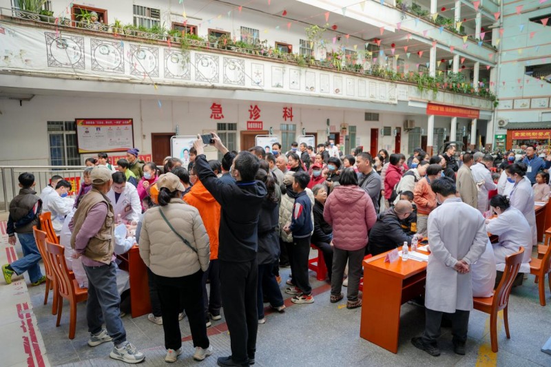揭牌仪式结束后,大型专家义诊活动随即在22日上午拉开帷幕。容县中西医结合骨科医院门诊大厅内人头攒动,来自城区及周边乡镇的群众一早便来到现场排队候诊。由庞宇舟教授领衔的10位中医、壮医专家现场坐诊,为广大群众提供脾胃病、头痛眩晕、痛症、风湿骨病、妇科疾病、肿瘤调理等多领域的诊疗咨询与健康指导。专家们耐心细致地了解病情,结合中医辨证与壮医特色诊疗手段,为每位患者制定个体化的调理方案。据统计,本次义诊共为近300名群众提供了现场就诊与健康咨询服务。不少群众表示:“在家门口就能挂上全国名老中医团队的‘专家号’,既省时省力,又放心安心!”医务人员介绍,此次义诊接诊人数远超预期,活动不仅有效缓解了部分群众“看专家难”的问题,也进一步提升了中医壮医文化在当地群众中的认可度与信任度。