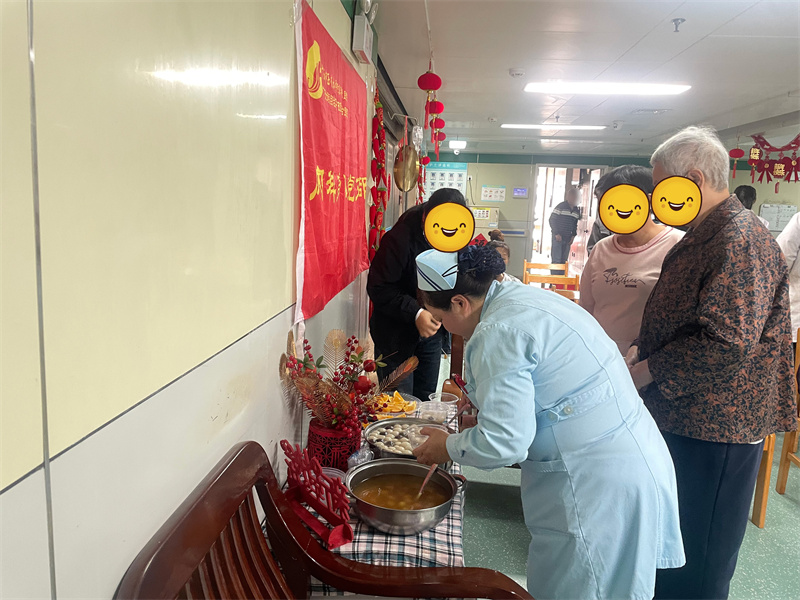 健康宣教结束后,趣味套圈游戏活跃了现场气氛。患者与家属踊跃参与、互动频频,欢声笑语充满整个病房,大家在轻松愉悦的游戏中放松身心、增进交流,感受节日的欢乐与活力。活动尾声,医护人员将一碗碗热气腾腾的汤圆送到患者手中。软糯香甜的汤圆象征团圆美满,鲜香可口的饺子承载浓浓关怀,让无法回家团聚的患者在病房中感受到家一般的温暖与陪伴。
