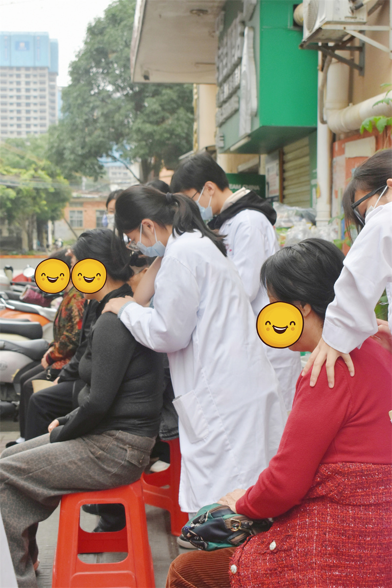 活动当天,志愿者们一早抵达现场,精心布置了血压测量区、手法按摩区、刮痧区、艾灸区四个服务区域,受到了社区居民的热烈欢迎。在血压测量区,志愿者们耐心为居民测量血压,并根据结果提供个性化的健康指导;手法按摩区尤受中老年群体青睐,志愿者们运用扎实的专业技能,帮助居民缓解肩颈酸痛、腰腿不适等常见问题;刮痧区内,志愿者们手持刮痧板,遵循中医经络理论,轻柔细致地为居民进行操作,并贴心叮嘱刮痧后的注意事项;艾灸区内,志愿者们根据居民的不同体质和症状,选取相应穴位进行温和灸,以温经通络、散寒祛湿,并细心讲解艾灸的注意事项和日常保健知识。现场体验过服务的居民纷纷表示身体轻松许多,对志愿者们的专业素养和热情服务给予高度评价。