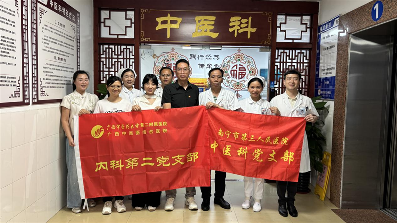 为深入推进党建与业务工作深度融合,搭建跨院交流学习平台,促进学科协同发展,4月15日,我院内科第二党支部赴南宁市第三人民医院中医科开展党建、业务、文化全方位交流共建活动,以党建为纽带,共话发展、共促提升。