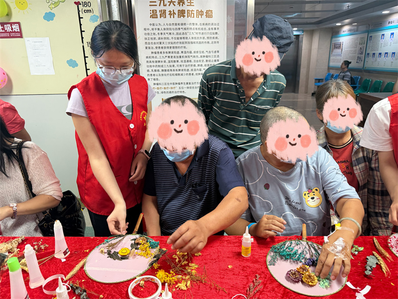 志愿者协助患者制作“永生花”团扇