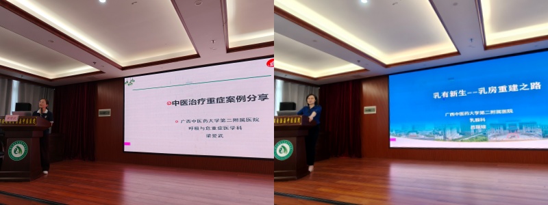 4月23日下午,活动首场学术讲座如期开讲,现场学习氛围浓厚,都安县中医医院医护人员齐聚现场,认真聆听、互动交流。吕丽琼以《乳有新生 —— 乳房重建之路》为主题,结合丰富临床典型案例,深入浅出讲解乳房重建核心要点、手术时机、术式选择与术后康复等专业内容,有效解答了基层医护在乳腺疾病诊疗、乳房重建领域的疑难困惑,为当地开展相关诊疗工作提供专业参考与实操指导。梁爱武围绕 《中医治疗重症案例分享》展开授课,立足多年临床实践经验,详述中医在重症疾病中的运用思路、辨证要点及经典病例诊疗全过程,引导基层医务人员夯实中医理论根基、强化临床实操能力,进一步拓宽了大家的诊疗思路与学术视野。