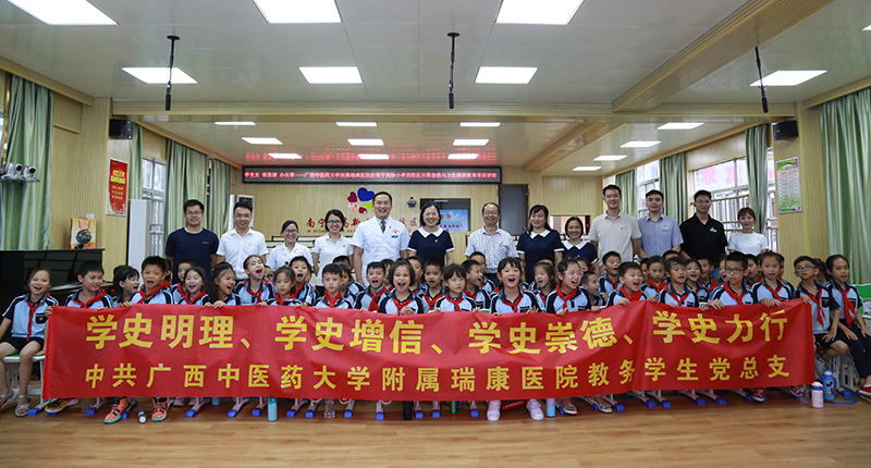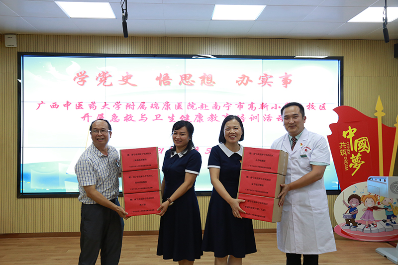 为献礼中国共产党百年华诞,深入推进党史学习教育,立足职责定位,把学党史、悟思想的落脚点和发力点放在办实事、开新局上,按照医院党委的统一部署,6月3日,我院教务学生党总支联合医技药学第四党支部、门急诊健康管理第一党支部、内科第十党支部,赴南宁高新小学西校区开展急救与卫生健康教育培训活动。高新小学西校区校领导、教师、学生及家长代表120余人现场参加了本次培训活动,并在全校各班级进行同步直播,共有2200余师生观看了直播培训。